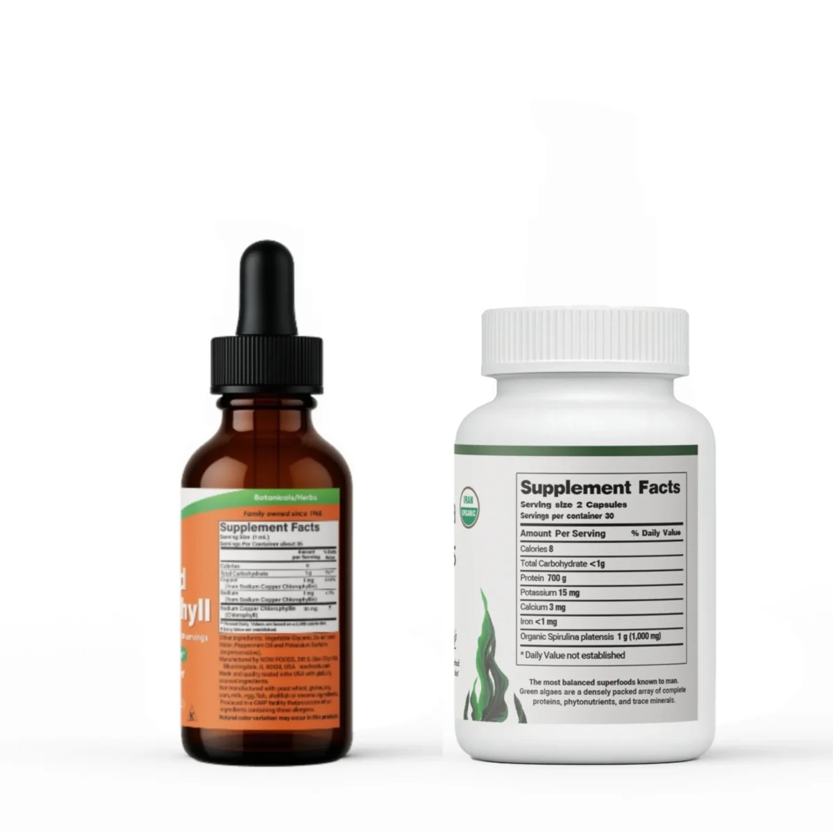 پک کلروفیل و کپسول اسپیرولینا یک دوره یکماههی کامل برای پاکسازی بدن، بهبود عملکرد کبد و افزایش انرژی است. این پک بهطور ویژه برای افرادی مناسب است که: